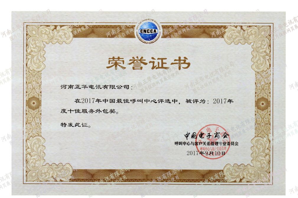 被鄭州聯通互聯網運營中心授予2018年度電話渠道最佳投訴管理獎